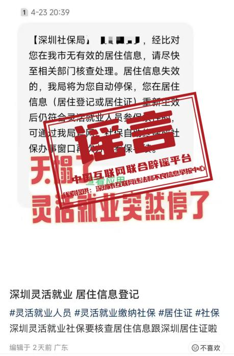 辟 谣 “深圳灵活就业社保被停保”不实